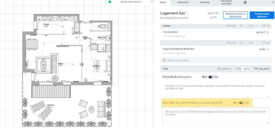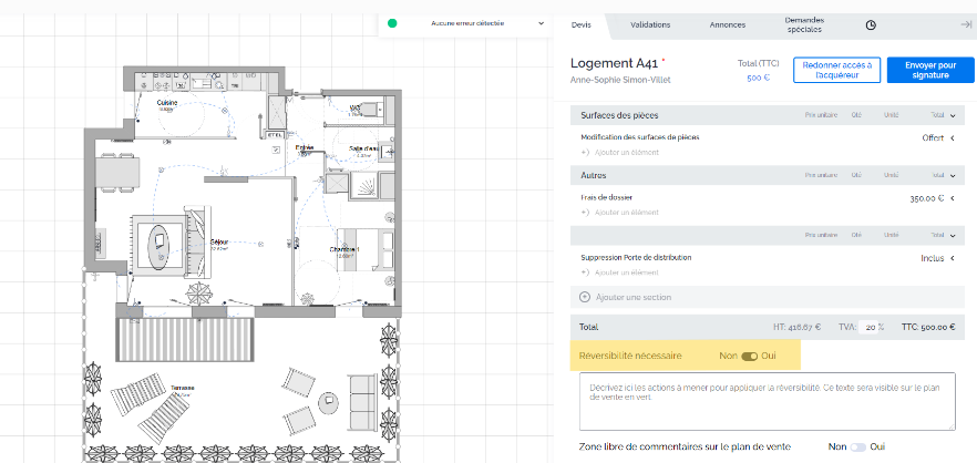 These annotations will be visible on the sales plan that will be signed by your buyer.