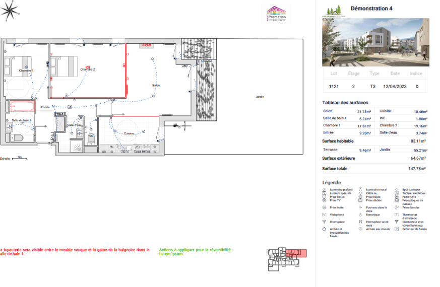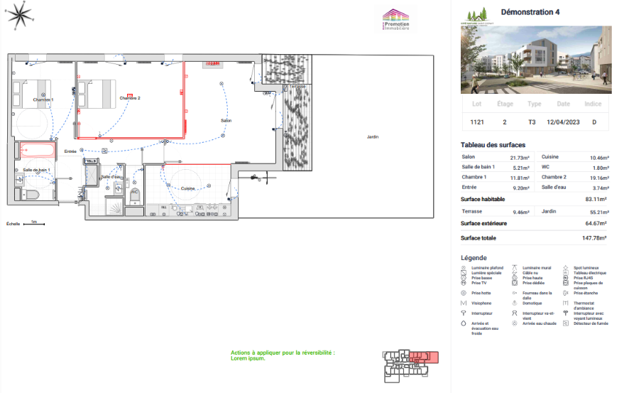 By selecting the "Free comment area on the sales plan" option, a free text field will open. You can enter any type of comment you wish. Many developers use this feature to list, in condensed form and in their own words, the modifications made to the plan. Others use it to highlight a specific detail that is not visible on a 2D sales plan.