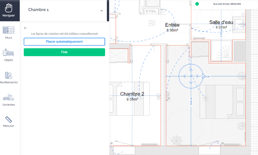 You can move the lines from the menu of each room to place them in the desired location. Click the "Measure Lines" button, move them on the plan in the concerned room, then click finish.