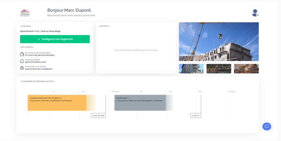 When you assign a housing unit to a buyer, they receive an email inviting them to create a personal account. Here is what the personal space accessible to the buyer looks like: