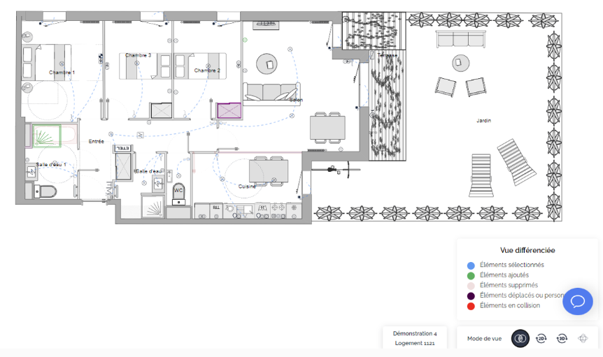 The diff view is an additional view mode available at this stage. Using a color code, you can easily identify all modifications made to your property.
