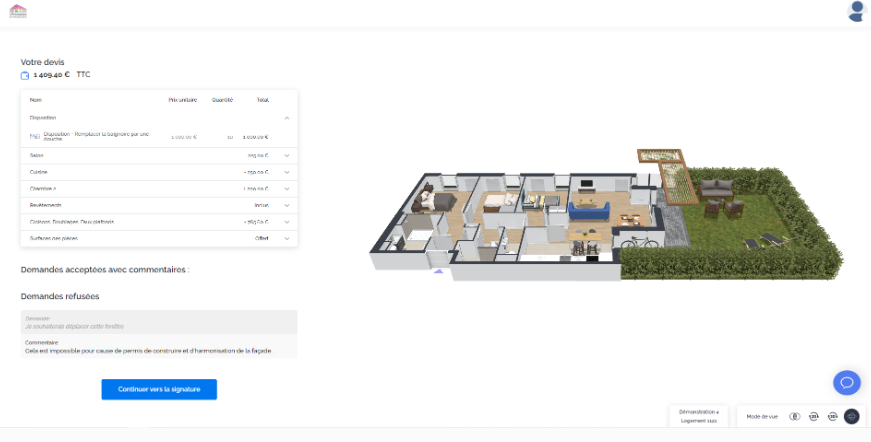 You can then access your 2D and 3D plan, your revised quote, and the developer's feedback on your special requests, if applicable.