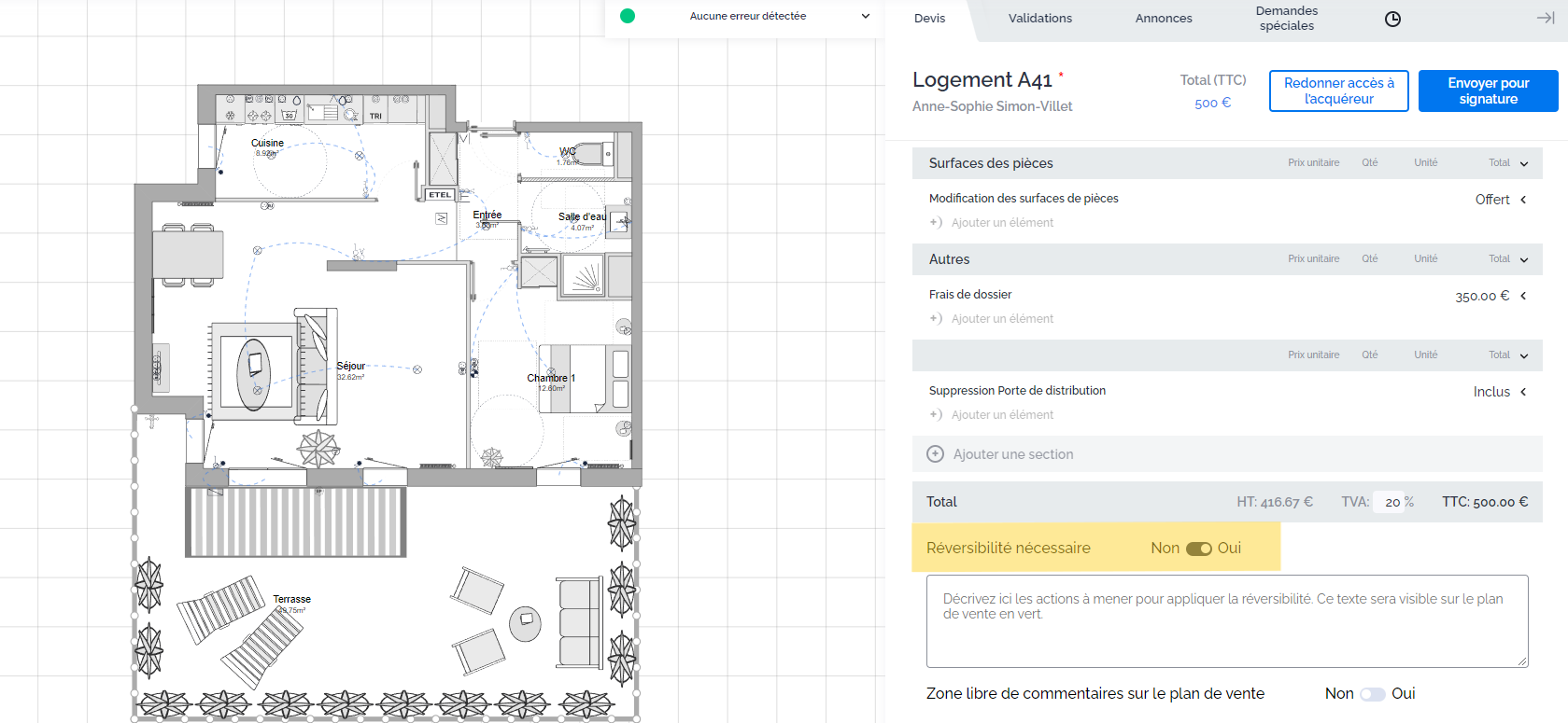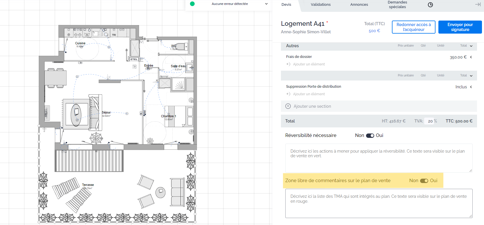 Ces annotations seront visibles sur le plan de vente qui sera signé par votre acquéreur.
