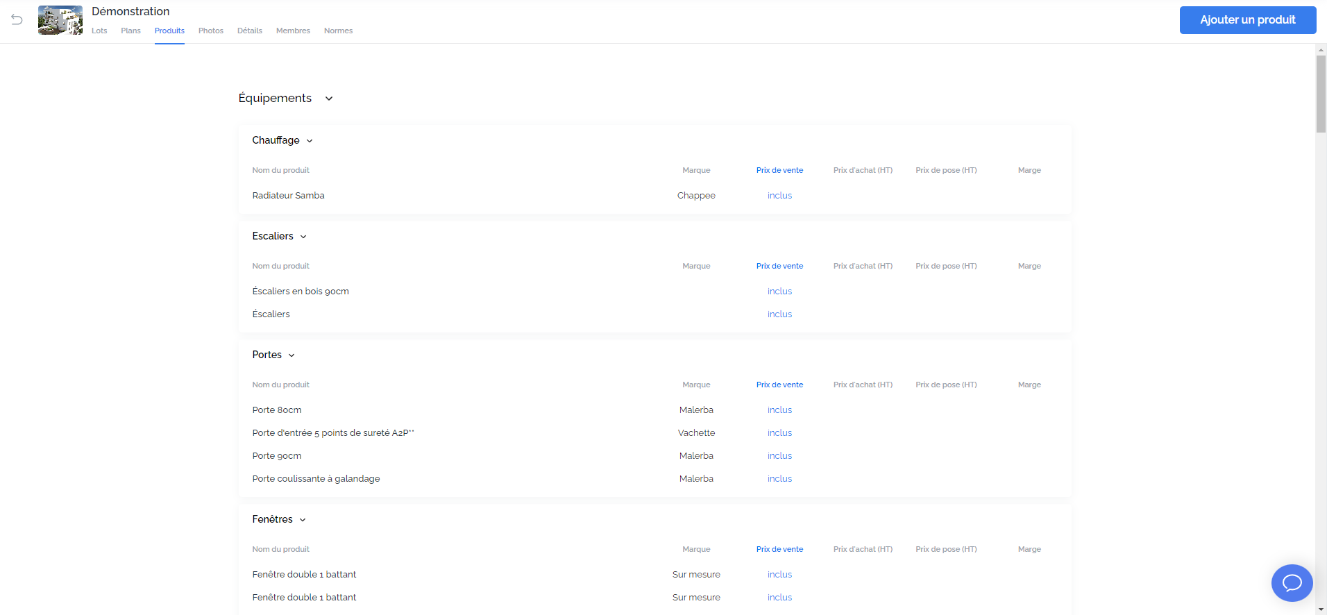 Vous avez accès à tous les produits du catalogue depuis votre espace de gestion des TMA et l'interface de création (bouton "Plan original") et pouvez décider de ne pas rendre disponibles certains produits sur le configurateur des acquéreurs.